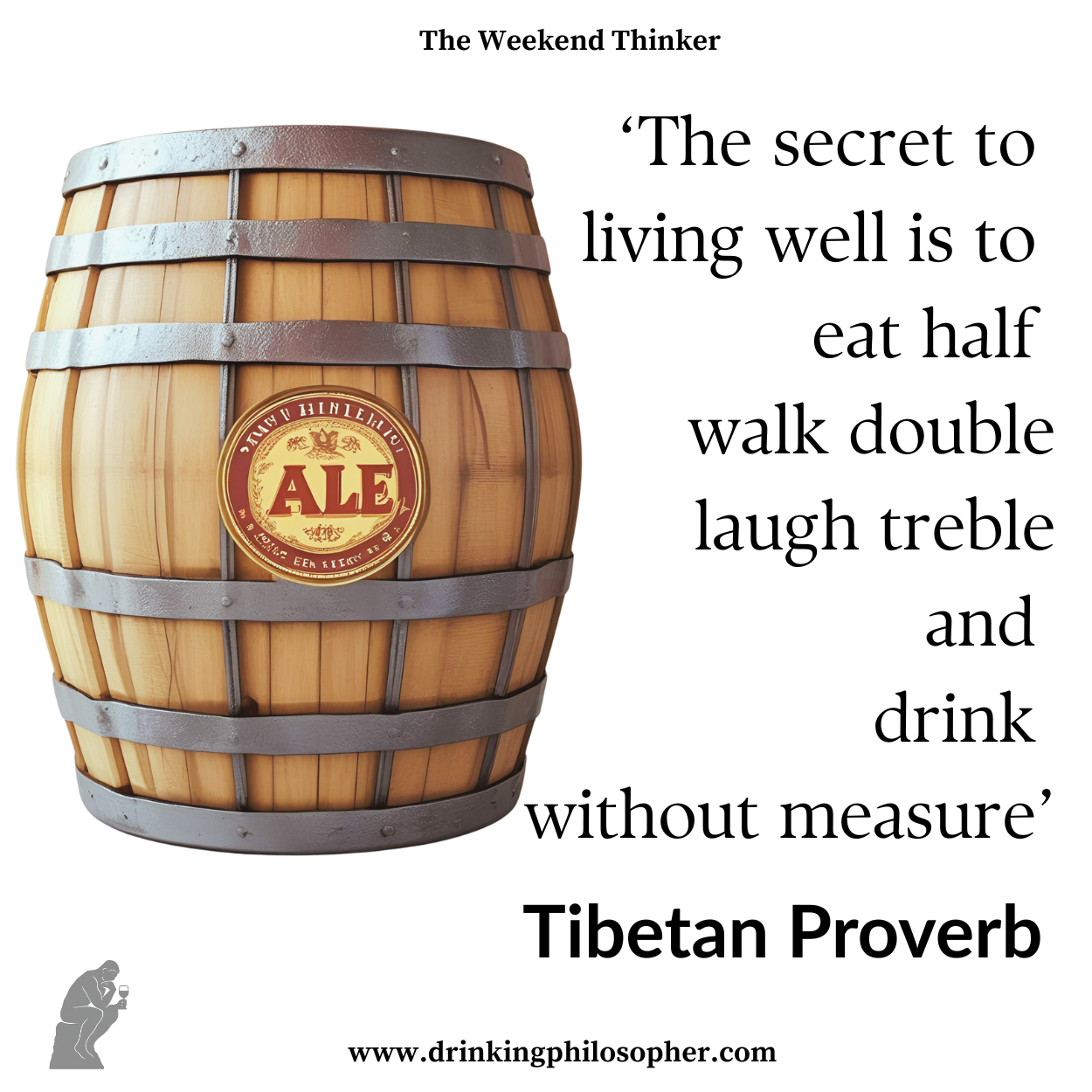 “The secret to living well is to eat half, walk double, laugh treble, and drink without reserve.” Tibetan Proverb
